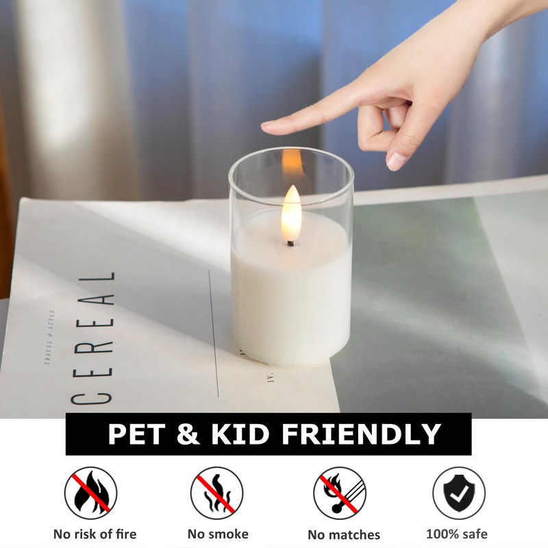 Flameless candles without real fire, no smoke, no dripping wax. Much safer and cleaner than tradition burning candles. With these fake candles flickering, you can enjoy beautiful sleeping, reading, relaxing time, without the worry of fire hazards.