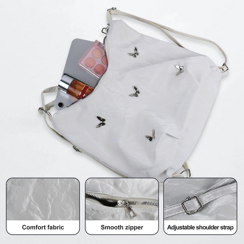 - Large Capacity: The shape of the travel purses for women is crescent-shaped, with a length of approximately 33cm, a height of 27cm on both sides, and a height of approximately 21cm in the middle. Large capacity can store books, umbrellas, cups, travel cosmetics, toiletries, or some clothes