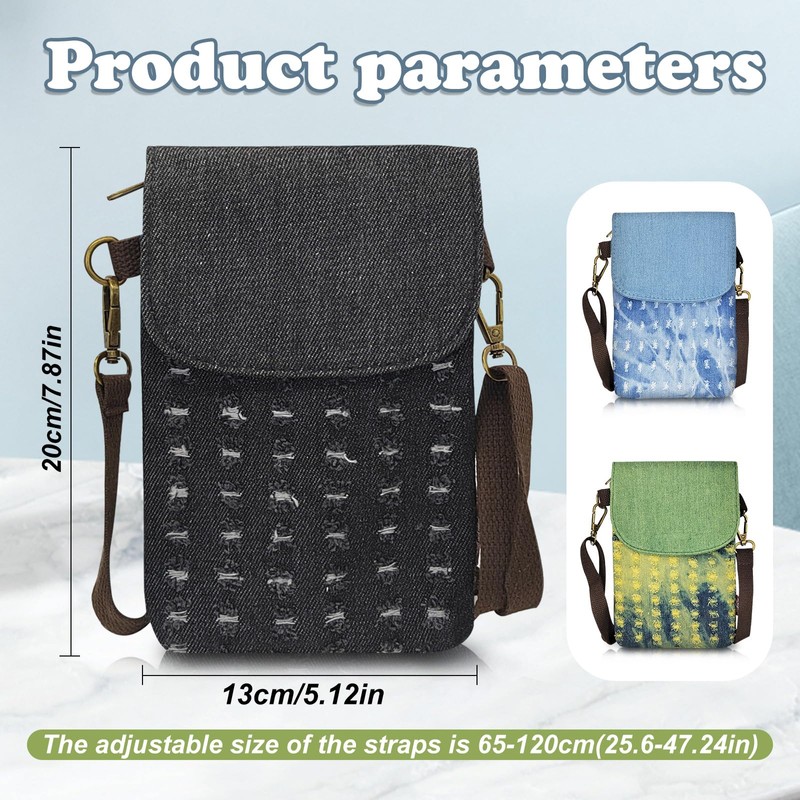 - Mix and Match Design: Our cellphone crossbody purse is made of both canvas material and denim elements, combining the two to create a fashionable and retro distressed denim canvas bag. It is an ideal accessory for leisure activities such as gatherings, travels, beaches, vacations, shopping, and daily use