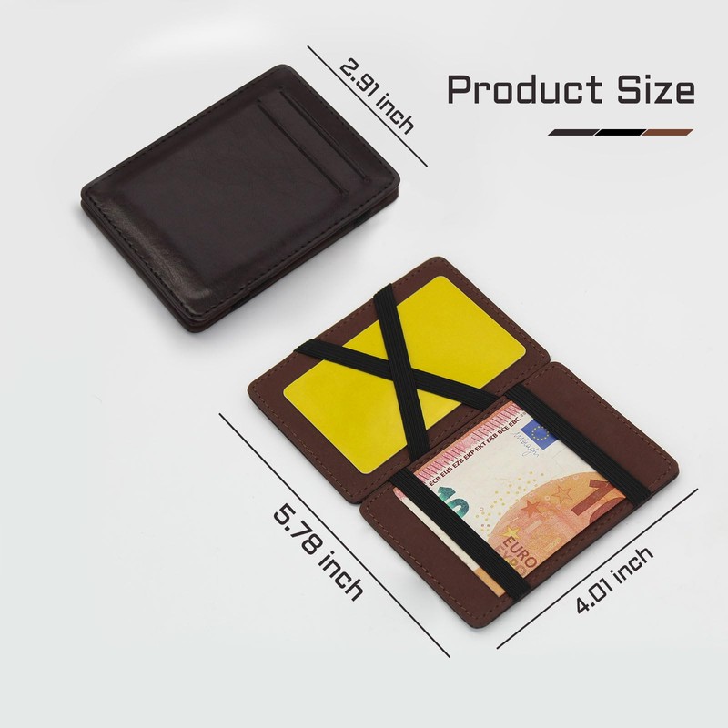 - Magic Wallet: Our flip wallet is different from conventional wallet structures. When opening the inside of the wallet, we use an elastic band magic wallet system. The double-sided flip design allows for safe and stable storage of items by simply inserting the banknote behind the elastic band