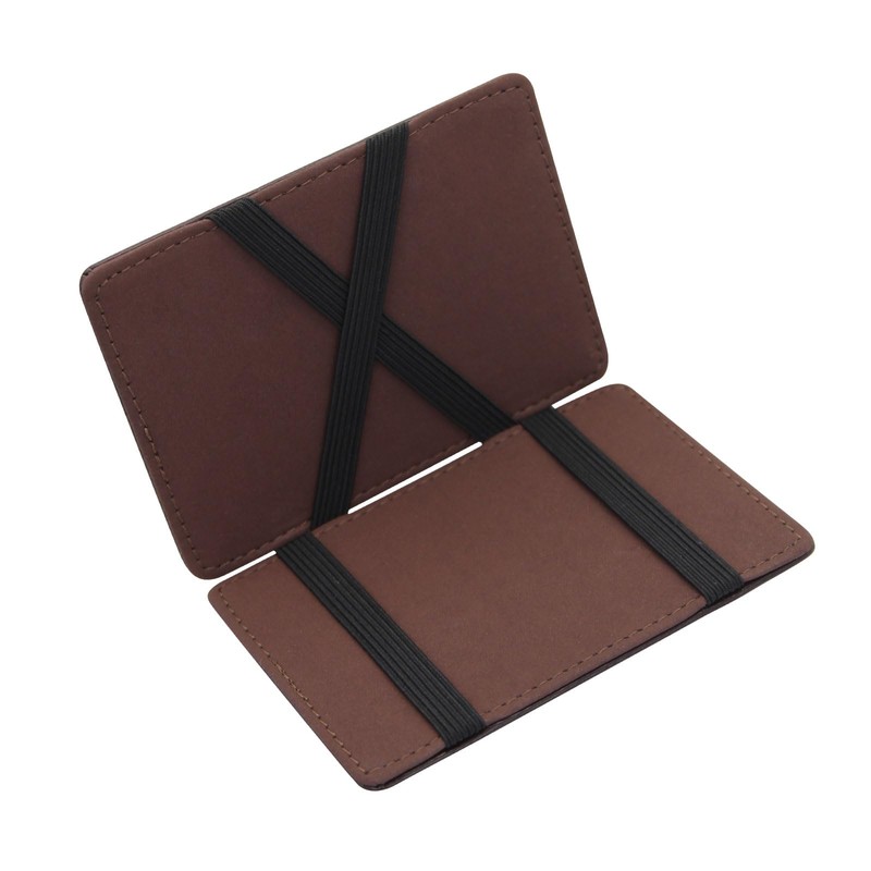 AfitLulu Magic Wallet, Money Clip Wallets for Men with 4 Card Slots and 2 Banknote Slots, Ultra-Thin Double Fold Minimalist Wallet for Men (Brown)