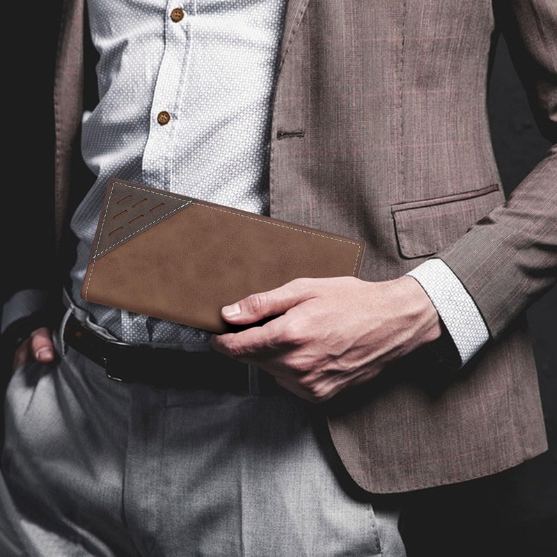AfitLulu Retro Mens Wallets Faux Leather Card Holder Wallet with 11 Credit Card Slots and Zipper Coin Pocket, Long Men's Wallets Bifold Men Slim Wallet with 3 Compartments and ID Window (Brown-2)