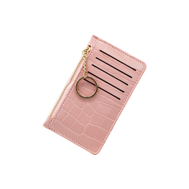 AfitLulu Small Credit Card Holder for Women, Crocodile Patterned Credit Card Wallet with Zipper and Multiple Card Slots, Coin Purse Keychain for Credit Cards, Keys, Coin (Pink)