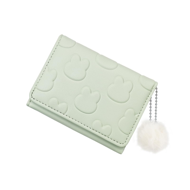 AfitLulu Small Wallet Women, Fashionable Rabbit Print Cute Wallet with Pompon Pendant and Heart-Shaped ID Window, Trifold Ultra-Thin Cute Coin Purse for Shopping, Travel, Gift Giving (Green)
