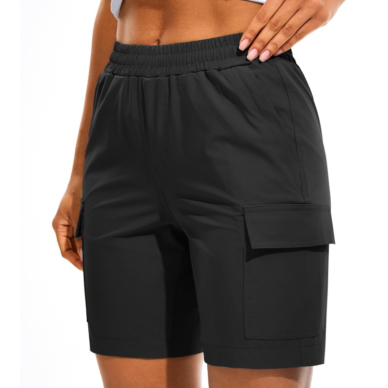 AFITNE Women's Hiking Cargo Shorts Quick Dry Lightweight Summer Athletic Running Shorts with Pockets for Golf Outdoor UPF 70+ 7" Black, L