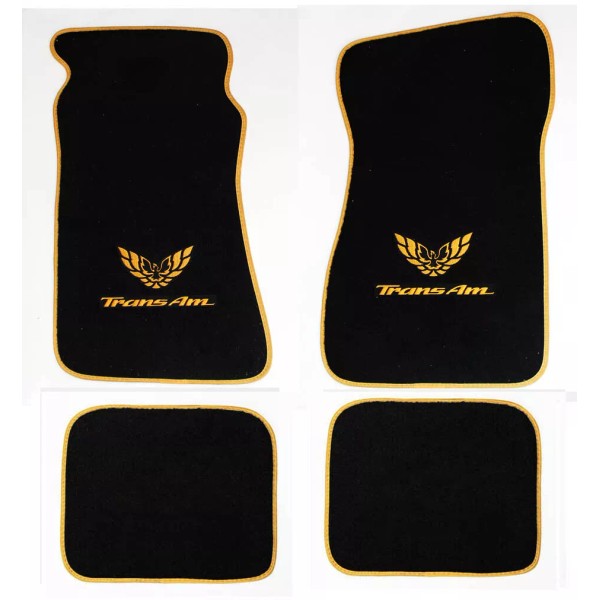 AFM NEW! Black FLOOR MATS 1970 - 1981 FIREBIRD Embroidered Logo Gold & Binding Set 4