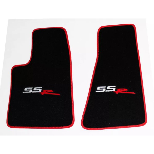 AFM NEW! BLACK Front Floor Mats 2003-2004 CHEVY SSR EMBROIDERED Logo and Red Binding