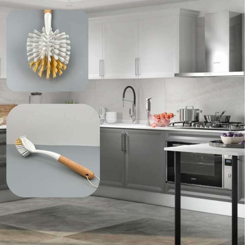 - Versatile Cleaning Tool: This brush features a built-in scraper and bamboo bristles, making it suitable for scrubbing pots, pans, dishes, and plates in the kitchen sink.