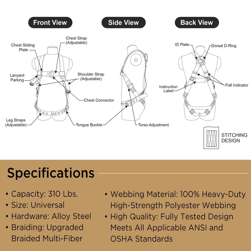 | Color: | Harness + Double Leg Lanyard W/ Rebar Hooks |