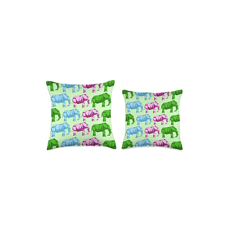 Africa Animal Artist Colorful Elephant Pattern Origami Throw Pillow