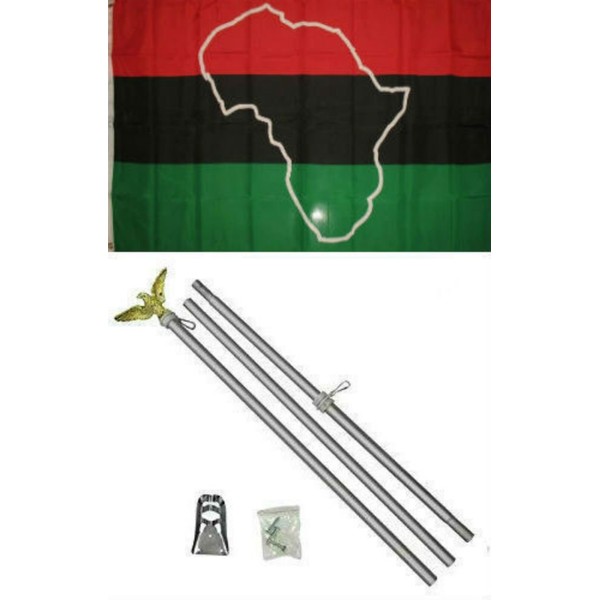 Africa Map 3'x5' Polyester Flag With 6' Aluminum Flag Pole Kit With Eagle Topper