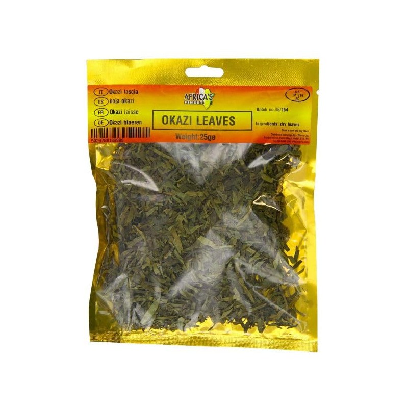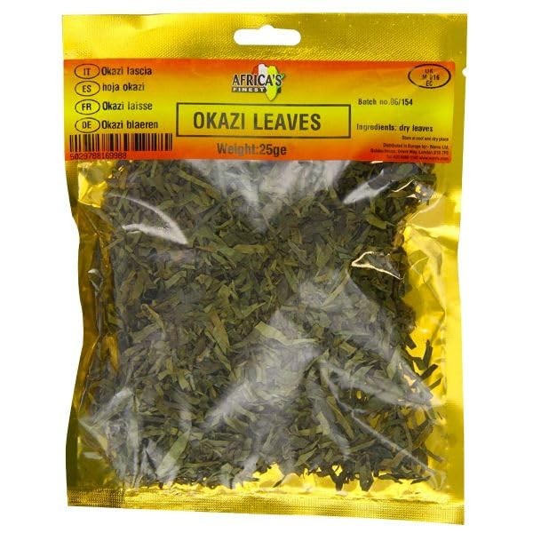 - PACKAGE CONTENTS: Each resealable pack contains 25g of dried Okazi leaves, perfect for multiple uses in traditional African cuisine