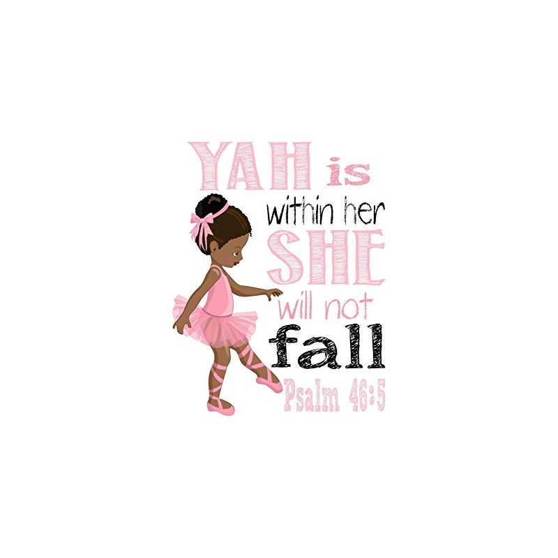 African American Ballerina Inspirational Nursery Decor Print - Yah is Within Her She will Not Fall Psalm 46:5
