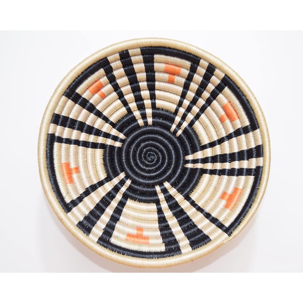 Hand Woven in Rwanda. We use locally grown grasses such as sisal and sweet grass. Sisal fiber is extracted from the plant, hand-dyed and weaved (pine needle) around the sweet grass. It takes two days to create this work of art. Each basket has a loop on the back, making it easy to hang on a wall. For use, you can mix them for an awesome wall basket collage, entryway bowl, as a table or furniture display or as a gift (definitely a hit of a gift). Made of natural fibers, safe to keep fruits however we don't recommend to put anything inside that can create stains. We also suggest to keep them away from direct sunlight, high humidity or excessive dust. Size: Small. Approximately 8 Inches Diameter x 2 Inches Height. Handmade from Africa. Fair Trade Product.
