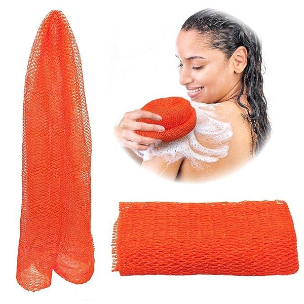 African Exfoliating Net Sponge, African Nylon Bath Towel, Exfoliating Bath Net for Dead Skin, Natural Body Exfoliator, Bath Scrub Loofah, Bath Net for Men Women - Colour: Orange