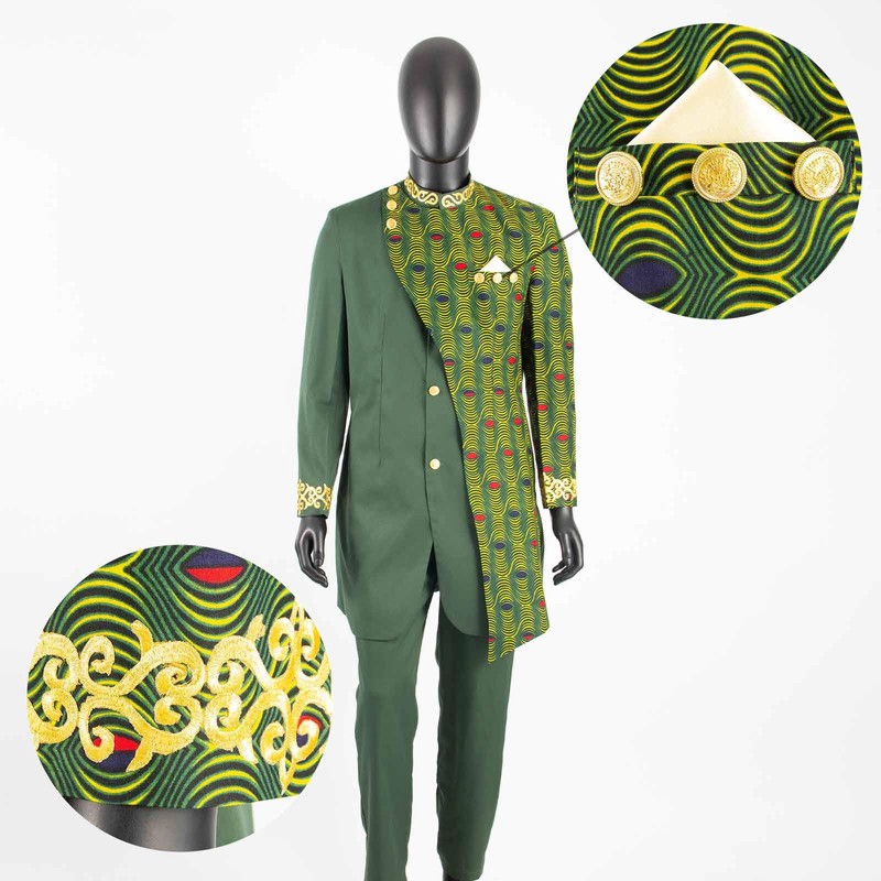African Suits for Men Embroidery Print Blazer and Pants Set Business Suit Party Wedding Evening 726 3 Medium