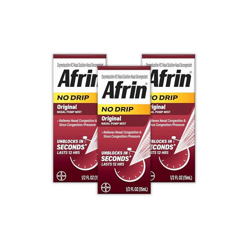 - No Drip Technology: Afrin's No Drip technology ensures the medicated mist stays where it's sprayed, providing effective nasal decongestion without the mess or discomfort of it dripping from your nose or down your throat