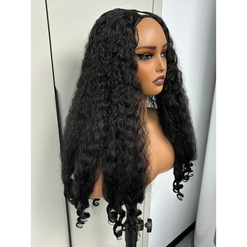 - 💐V Part Synthetic Wig: Crafted with premium synthetic fibers, this curly v part wig delivers a stunning, natural black hue, adding effortless elegance to your look.