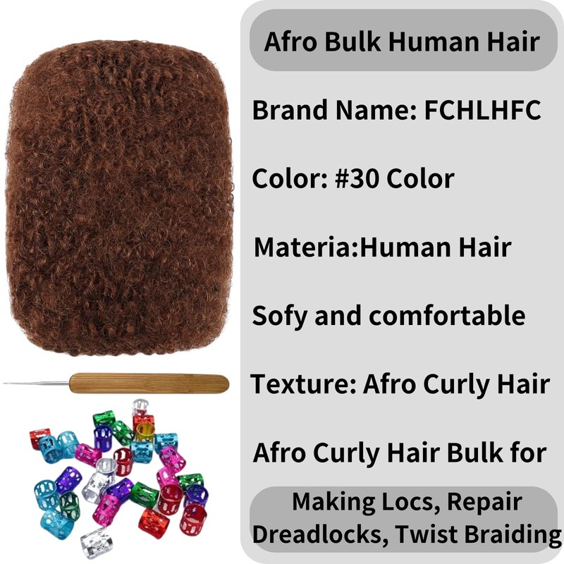 Afro Kinky Curly Hair Afro Kinky 100% Bulk Natural Human Hair Braiding Hair for Dreadlocks, Locs Repair, Dreadlock Extensions, Twists, Braids 30g 8inch (Auburn)