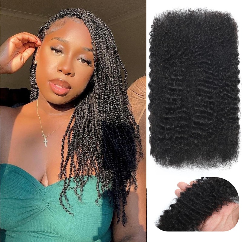 - 【Hair Material】Afro Kinkys Bulk Hair is made of 100% unprocessed human hair, which is soft and natural to the touch, and looks realistic and can blend perfectly with real hair. It can be bleached and dyed, and the hair can pass the burning test.