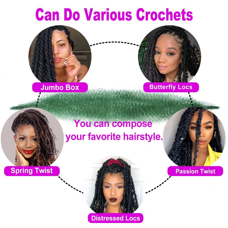 Afro Twist Hair 24Inch 6Packs Springy Afro Twist Hair Crochet Braiding Hair (16 Inch (Pack of 3), D-Green)