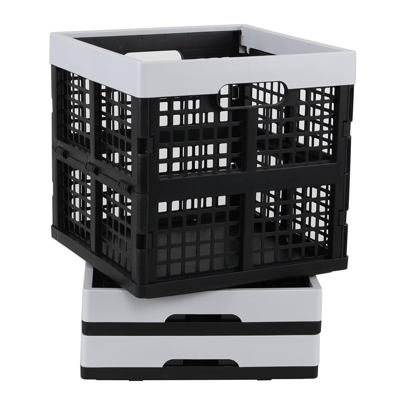 Afromy 18 L Plastic Square Collapsible Crates, Set of 3 Folding Milk Crates, Black