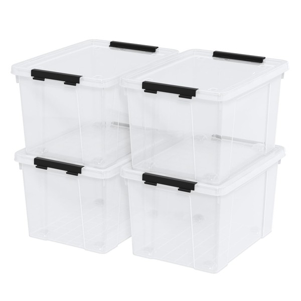 Afromy 4-Pack Plastic Storage Bins with Lid, Latching Stackable Utility Tote, 35 Quart, Clear