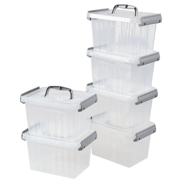 Afromy 6-Pack 3 Quart Storage Bins, Small Plastic Storage Container, Stackable Organizing Box with Lid/Handle, Clear