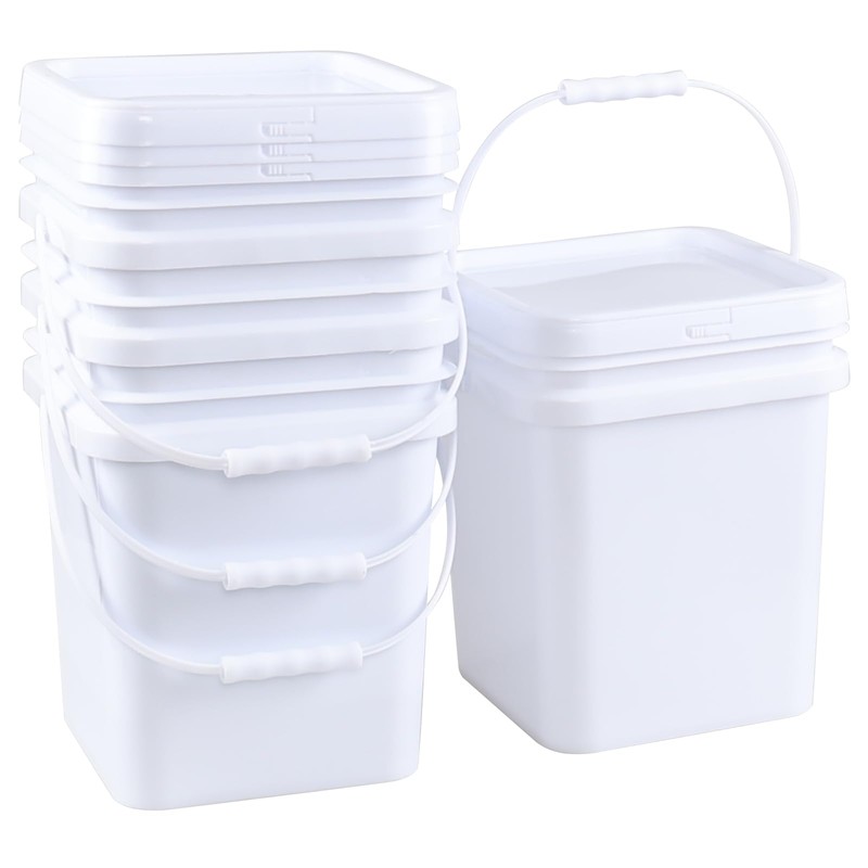 Afromy Plastic Bucket with Airtight Lid/Comfortable Handle, Heavy Duty White Pails Buckets for Storage (5 Gallon, 4 Pack)
