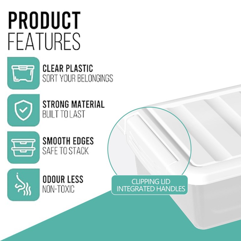Afromy Plastic Storage Containers with Secure Latching Lids, Stackable Organization Bins, Clear/White, 14 Quart, Set of 2