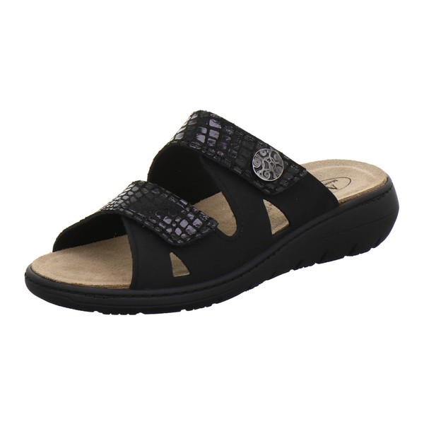 AFS Shoes 2808 Comfortable Ladies’ Leather Mules, Practical Work Shoes with Interchangeable Foot Bed, Comfortable Slippers - black, size: 38 EU
