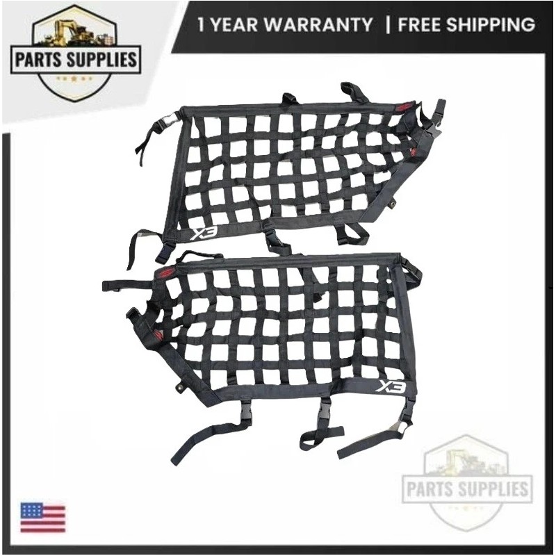 Aftermarket 2 Pcs Black Side Window Nets with White X3 Logo For Can Am Maverick X3 2017-2023