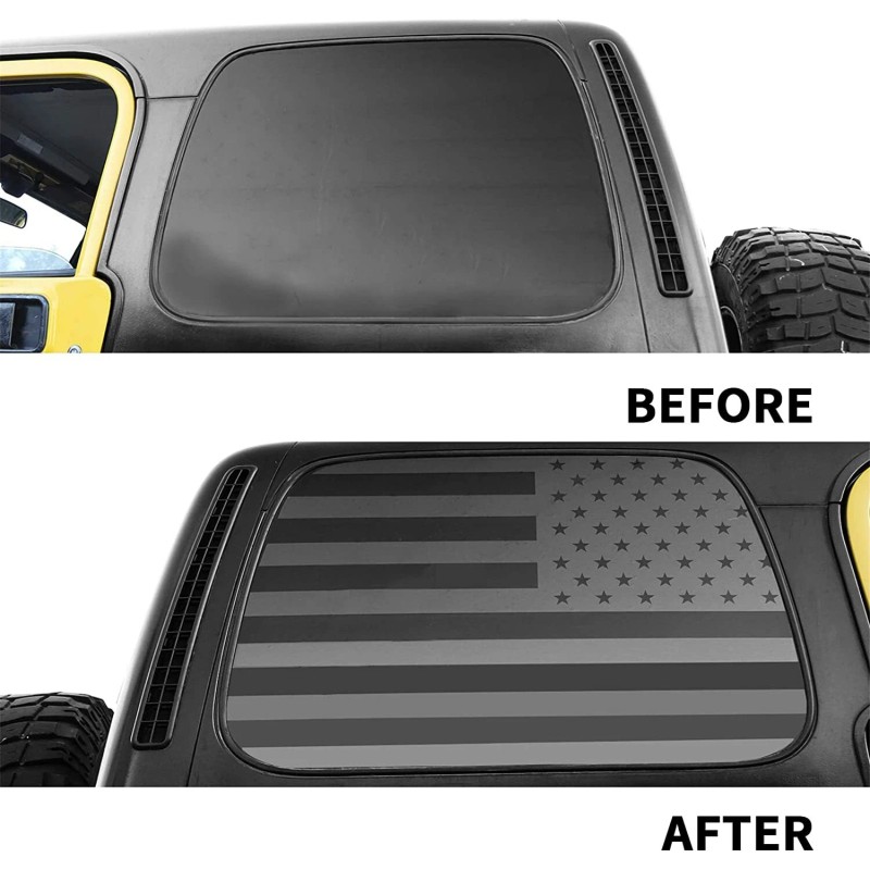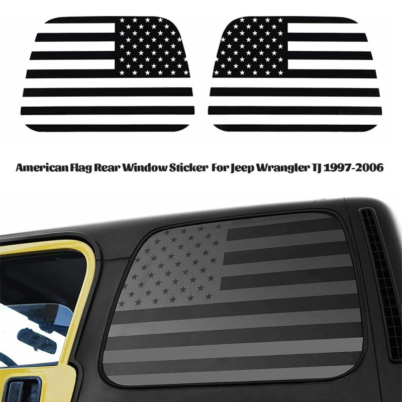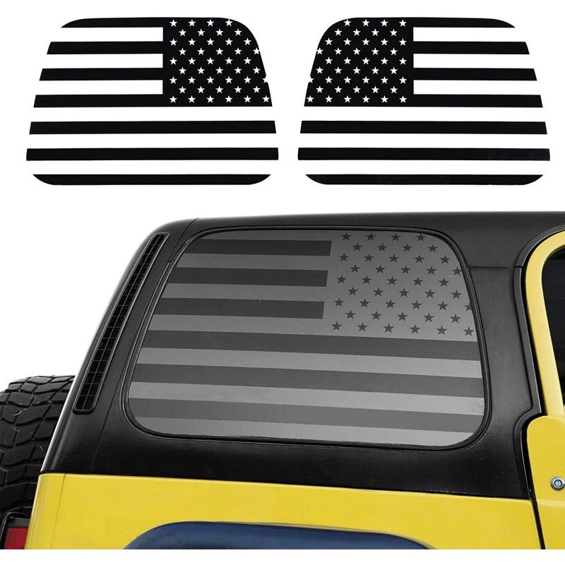 Aftermarket Branded 2x American Flag Rear Window Stickers Window Decals For 1997-2006 Jeep Wrangler