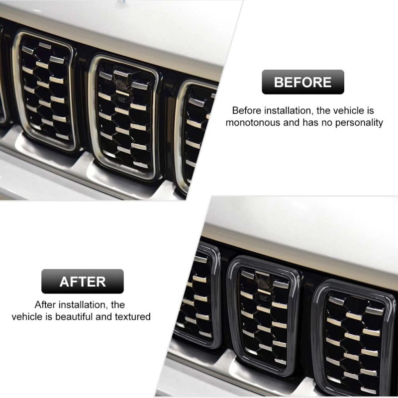 7x Black Car Front Grille Frame Inserts Protector for Jeep Grand Cherokee 2021+ Feature:   ✔ FITMENT: Only Fit For Jeep Grand Cherokee 2021+ ✔ UV-treated bezels attach to stock mounting points perfectly ✔ No cutting or drilling is required. ✔ High Standard Quality: Made of high-quality ABS plastic and used polish process for deformation protection, anti-corrosion and years of trouble-free use ✔ SATISFACTION SERVICE: If you're not 100% satisfied with our item, simply return it for a full in 30 days   Fitment:   •Fit For Jeep Grand Cherokee 2021+   Specifications:   • Condition: 100% Brand New   • Size: (As the picture is shown) • Color: Black • Material: High-Quality ABS Plastic       Package Include: • 7pcs/set Front Center Bumper Grille Grill Cover Trim
