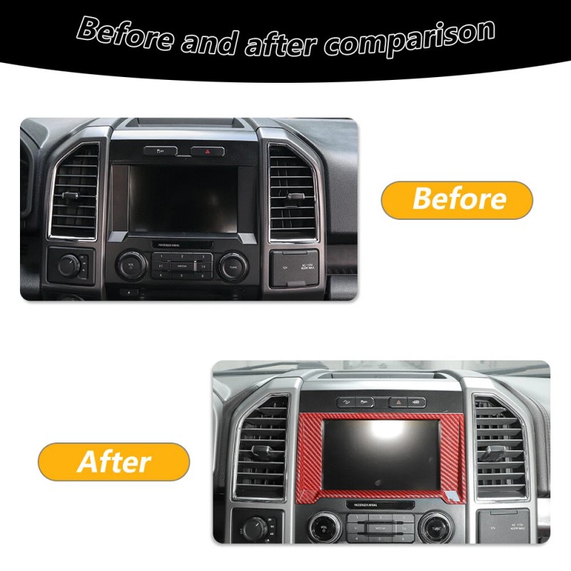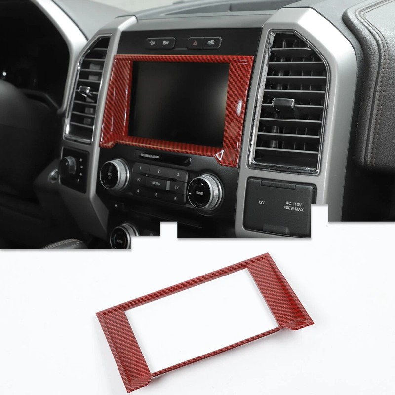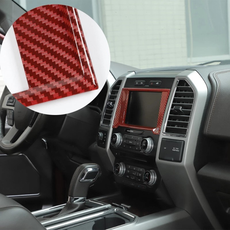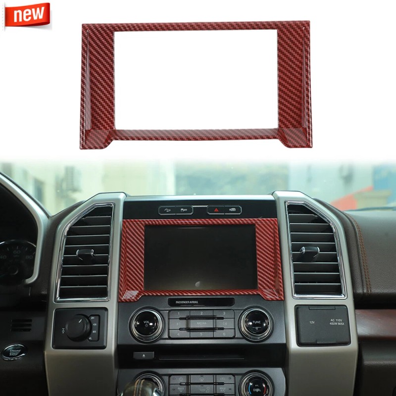 Aftermarket Branded Dashboard Navigation GPS Screen Cover Trim For Ford F150 2015+ Red Carbon Fiber