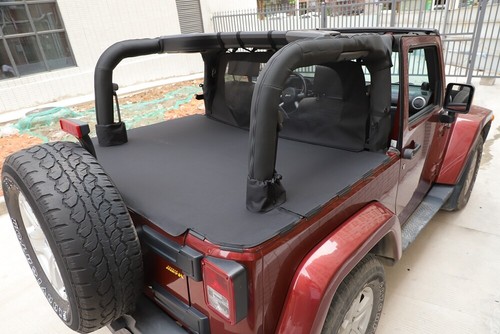 Aftermarket Branded Rear Trunk & Seat Cargo Cover Security Shield Shade for Jeep Wrangler JK 07+ 2Dr