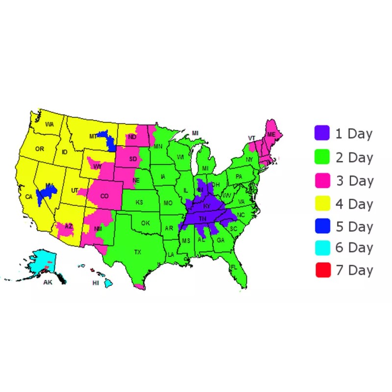 Please refer to the image below for shipping times. If you would like a faster shipping service or shipping to anywhere outside the contiguous 48 states, contact us for a quote.