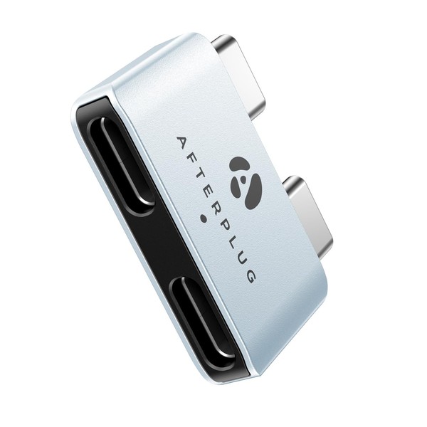 Afterplug Dual USB‑C Extender for MacBook with Case, 2-Port Pass‑Through Adapter for Thunderbolt 5/4/3 & USB4 – 240W PD, 8K Video, 80Gbps Data - Sky Blue