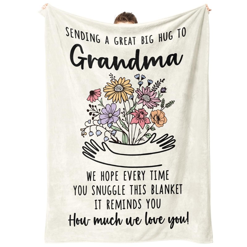 - 【Wrap Her in Love】Featuring a touching design of open arms embracing a bouquet, this blanket feels like a hug from afar. A sweet reminder of how much she’s loved, sure to warm the heart of your Grandma, Nana, or anyone who’s like a grandma to you