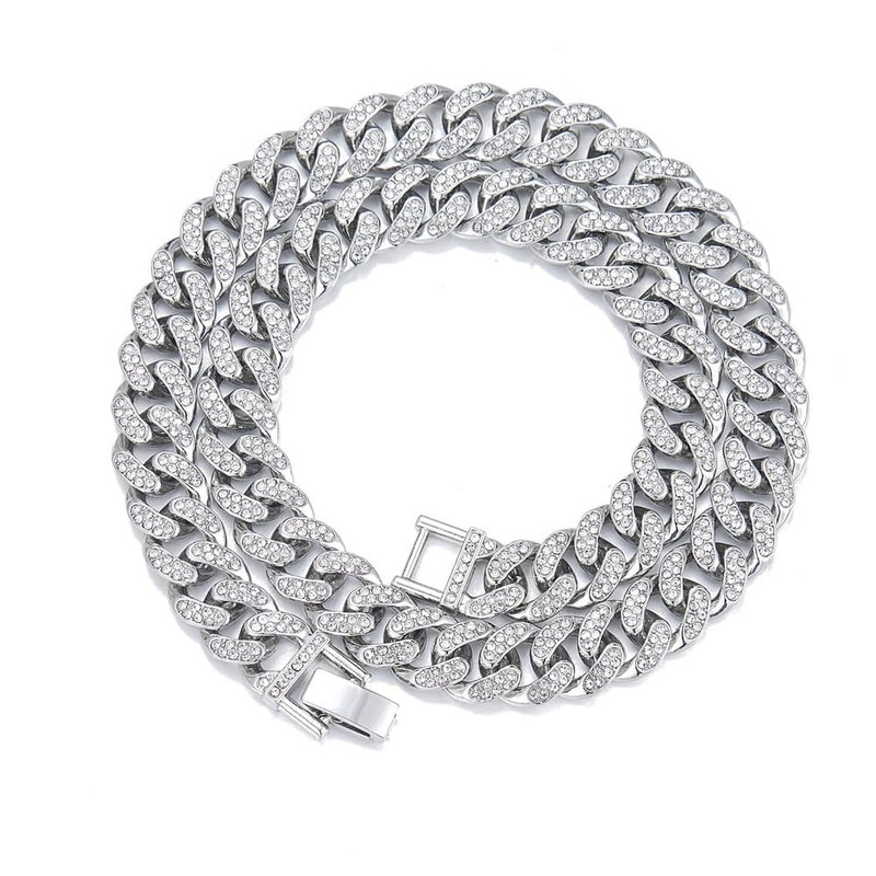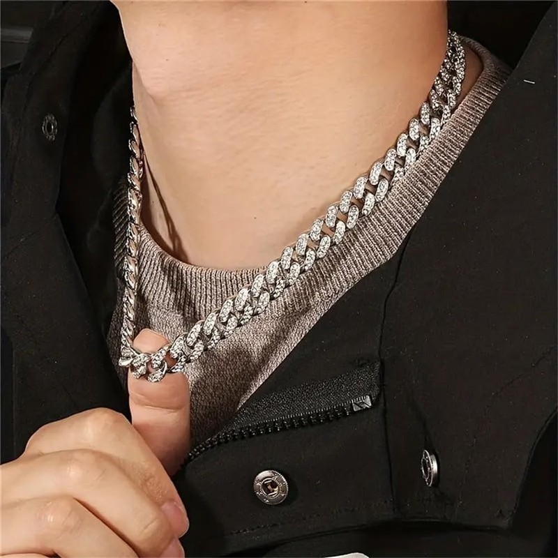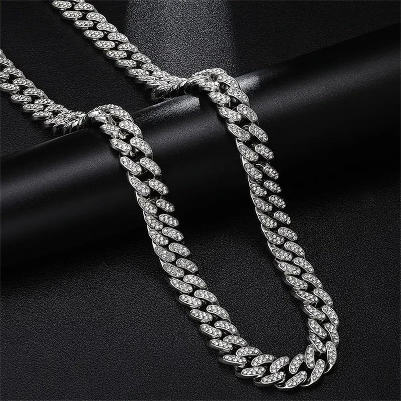 AFTREECuban Chain Men's and Women's Ice Crystal Chain Spiny Diamond square Zircon 18k silver plated titanium Shiny Miami necklace Hip Hop accessories(22 inches silver)