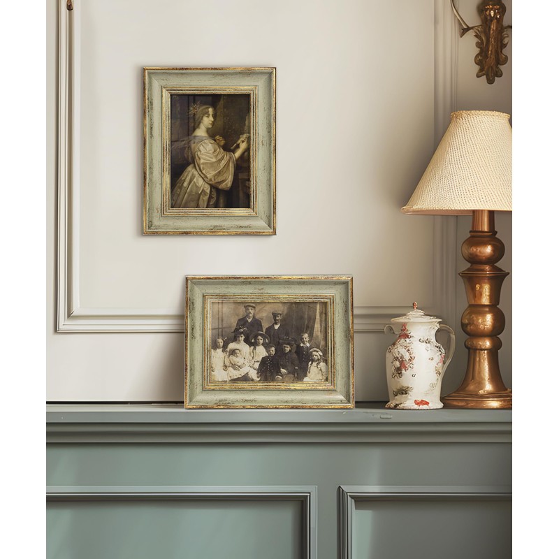 - ANTIQUE PHOTO FRAME: The antiqued design is based on green and gold to make it look stylish in any atmosphere