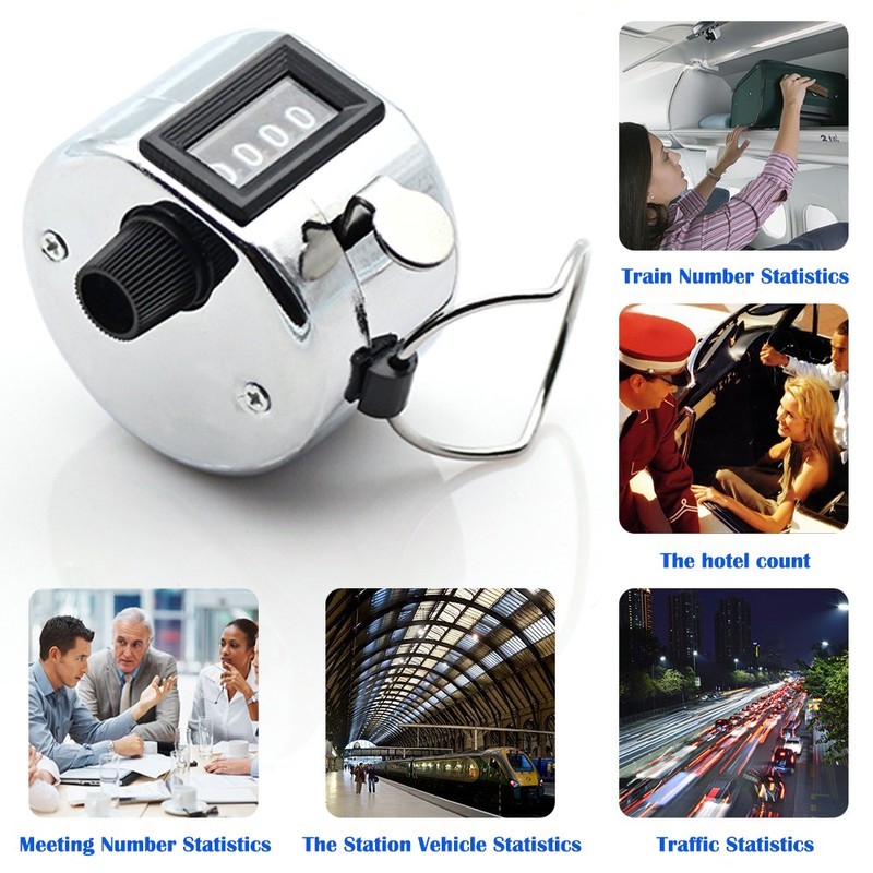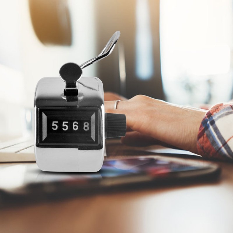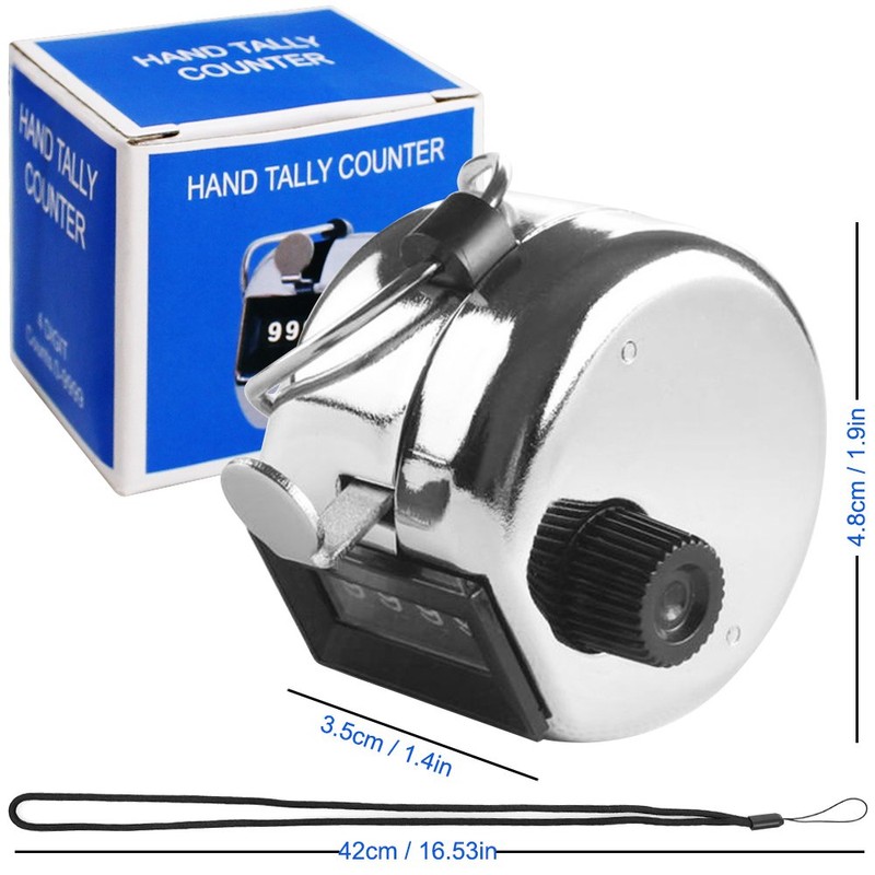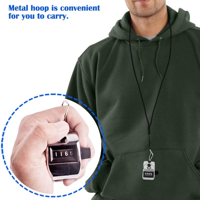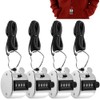 AFUNTA 4 Digit Hand Tally Zähler mit Lanyards, 4 Pack Mechanische Lap Tracker Manuelle Clickers mit Metall Finger Ring Hoop Halter und Schwarze Strings - Silber
