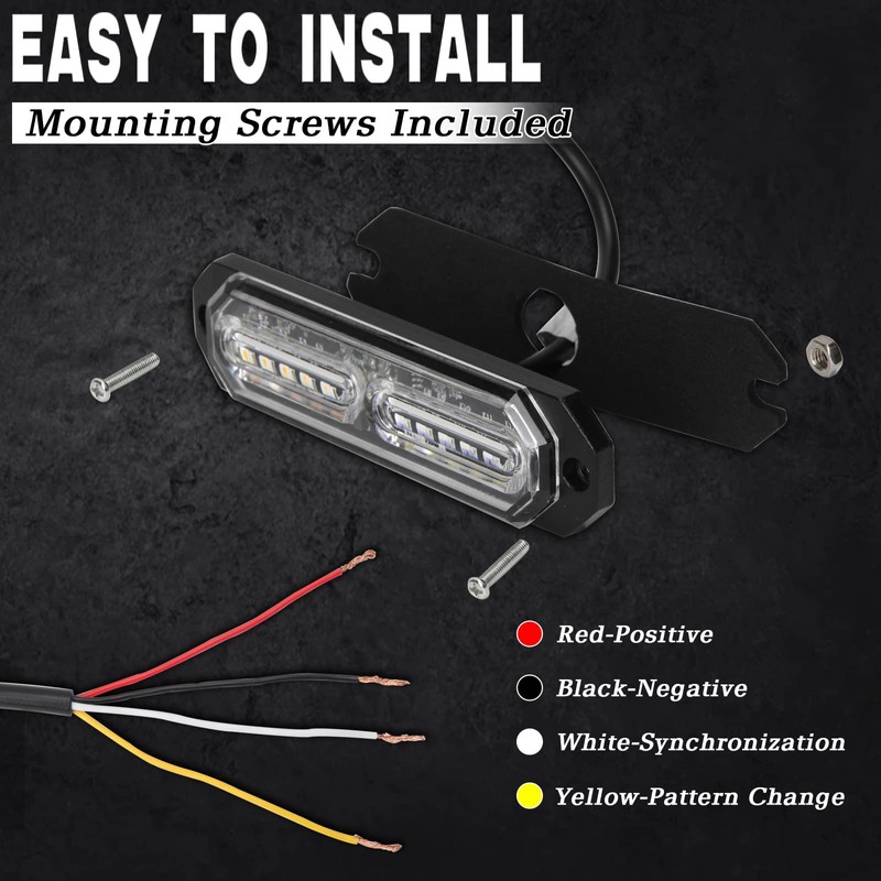 • 【23 Flashing Modes Flashing Light】-- Designed with 23 different flashing modes, last pattern memory function. 8pcs white and amber strobe light, Fast flashing, slow flashing, breathing, etc strobe modes.