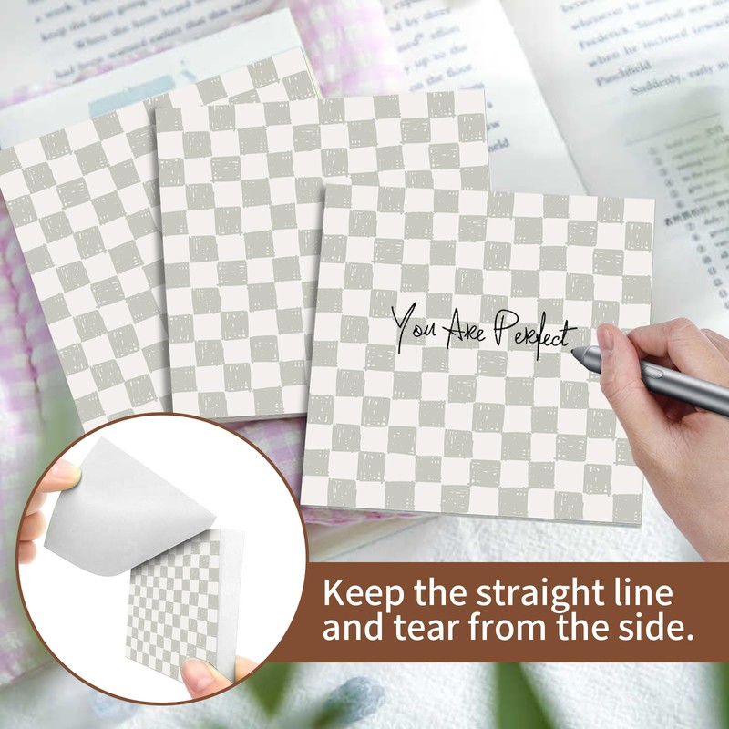 AFYEWKC Sticky Notes 3x3 Inches, Cute Self-Stick Pads, Funny Self-Sticky Note Pads for Office, Home, Organization Retro Green Checkerboard