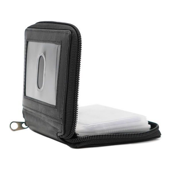 ag wallets Mens Zip Around Leather Wallet with Inserts (Black)