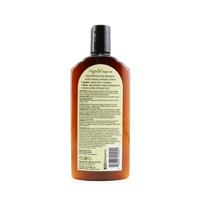 Agadir Argan Oil Daily Moisturizing Shampoo 366ml is a nourishing shampoo that instantly penetrates and moisturizes hair, reducing drying time and leaving hair silky smooth without feeling oily or greasy.