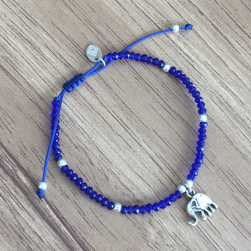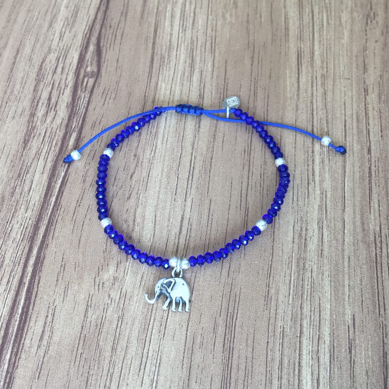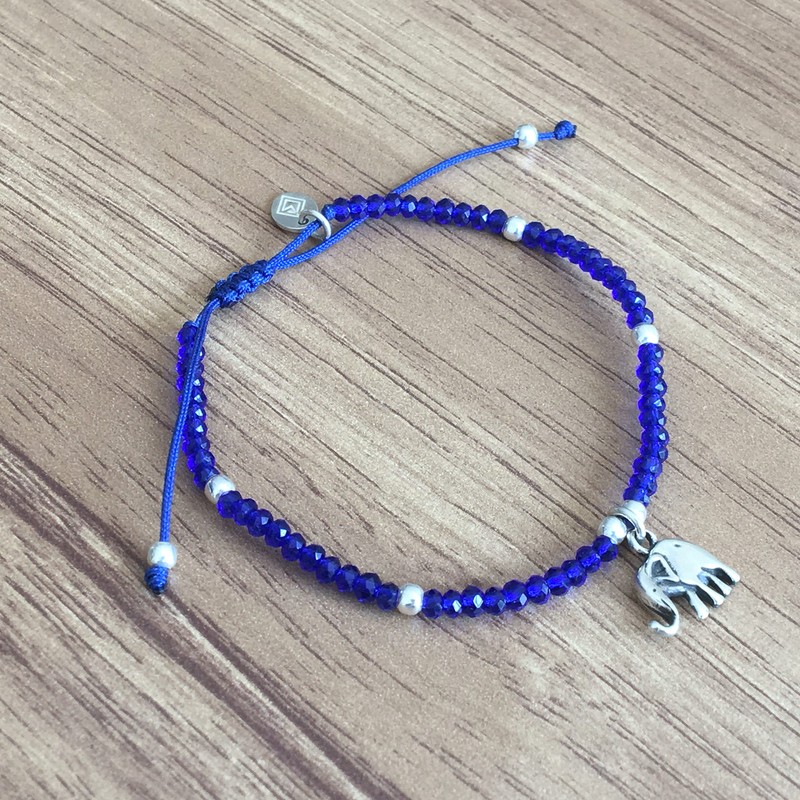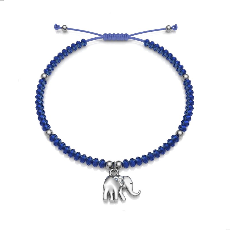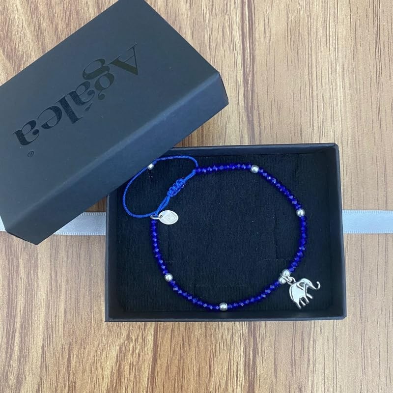 Agálea | Pulsera con dije de Elefante de plata ley 925 y cristales austriacos rojos, negros y azules, ajustable para mujer (Azul)