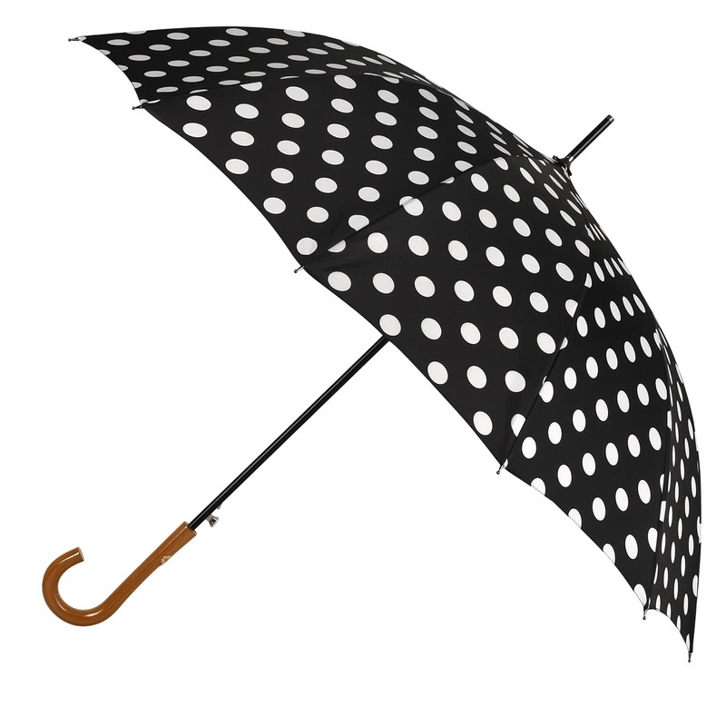 Agaric Classic Wooden Hook Handle J Stick Umbrella Auto Open Windproof Umbrella for Women (Black)
