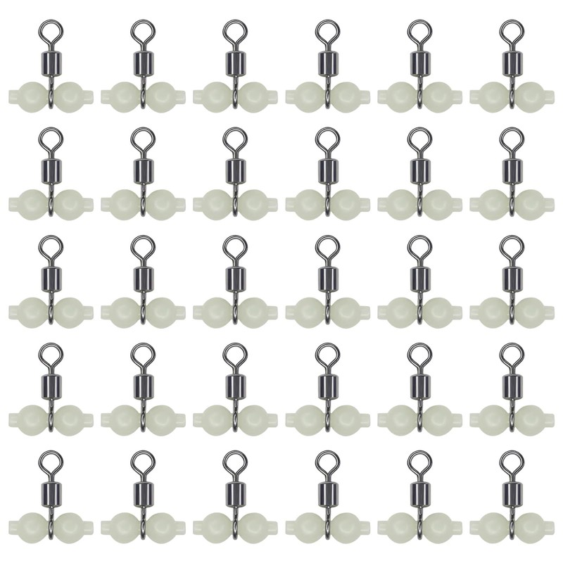 - ✔【Accessories for Fishing Tackles】30-piece fishing swivels can quickly connect multiple hooks and quickly replace soft bait and real bait. It is used for high speed trolling and iron fishing. It is suitable for a variety of fishing conditions. In combination with luminous fishing beads, it emits bright light even in low light conditions, which can effectively attract the fish and increase the chances of a successful catch.