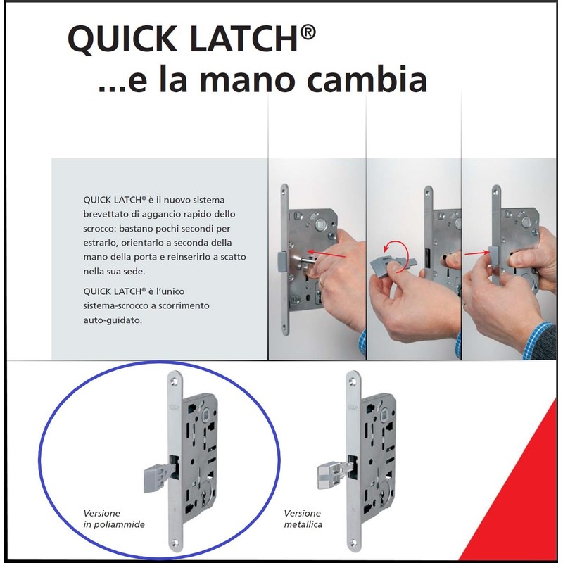 - The latch also acts as a latch and holds the signature AGB double chamfer: its shape and size have been designed to avoid annoying shaking when the door is closed.